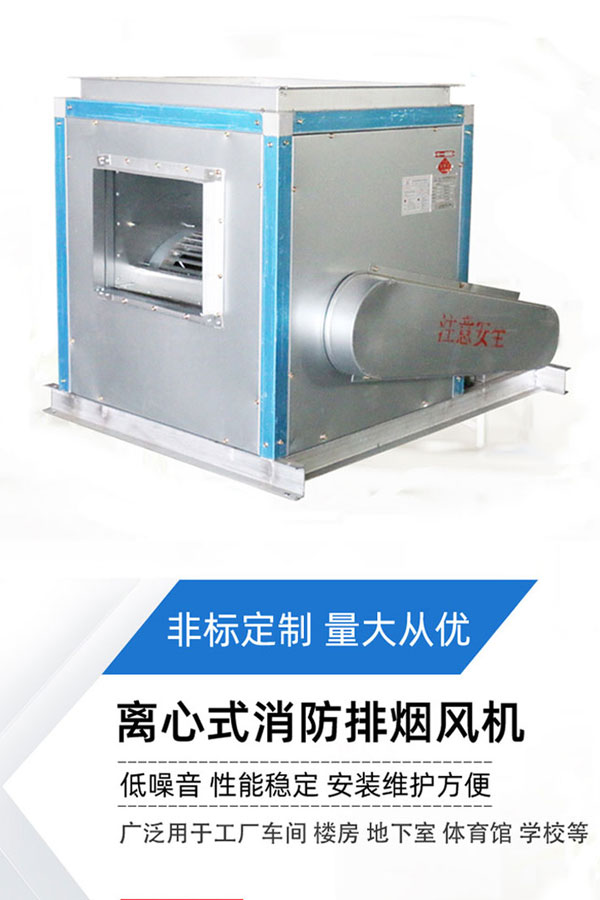 消防高温排烟风机适用于高层建筑、地下建筑及隧道、烘房等通风换气或高温排烟。能?80℃高温条件下连续运转30分钟以上,介质温?00℃条件下连续运行20小时/次不损坏,是理想的消防必备设施?/p>